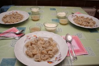 Un, 3 su, 4 tuz yoğur, biraz sert. İnce yuvarla, bir cm kes, iki parmakla içini ayır, suda haşla süz, tersiye diz üstüne peynir serp.
